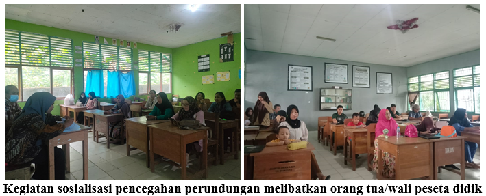 Sekolah juga melibatkan orang tua/wali dan masyarakat sekitar sekolah dalam kegiatan sosialisasi pencegahan perundungan berupa kegiatan diskusi antar wali-wali kelas dengan orang tua/wali dan kegiatan pembinaan melalui guru-guru BK. Penguatan sosialisais pencegahan perundungan juga dilaksanakan kepada orang tua/wali pada saat kegiatan pembagian rapor semester 2, tanggal 29 Juni 2024 oleh wali-wali kelas.