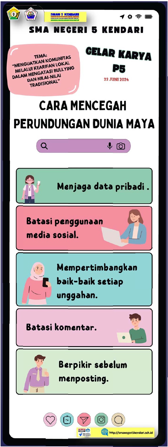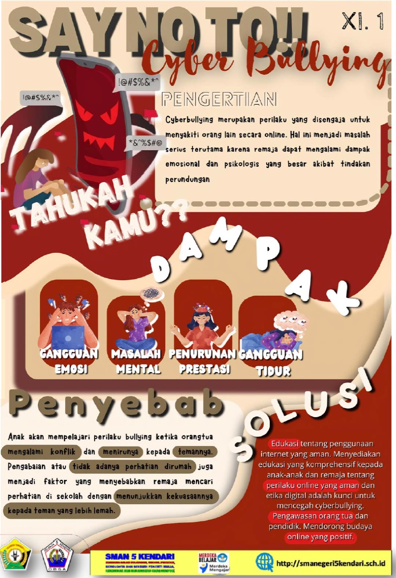 Pada semester 2 tahun pelajaran 2023/2024, tepatnya pada bulan Januari hingga Mei 2024, kegiatan pencegahan perundungan merupakan salah satu topik kegiatan Projek Penguatan Profil Pelajar Pancasila untuk peserta didik kelas XI pada tema “Bangunlah Jiwa Raganya” dalam bentuk “Solusi untuk Perundungan Daring (cyber bullying).