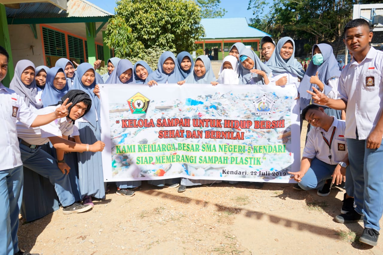 Kampanye perangi sampah plastik di sekitaran lingkungan SMAN 5 Kendari